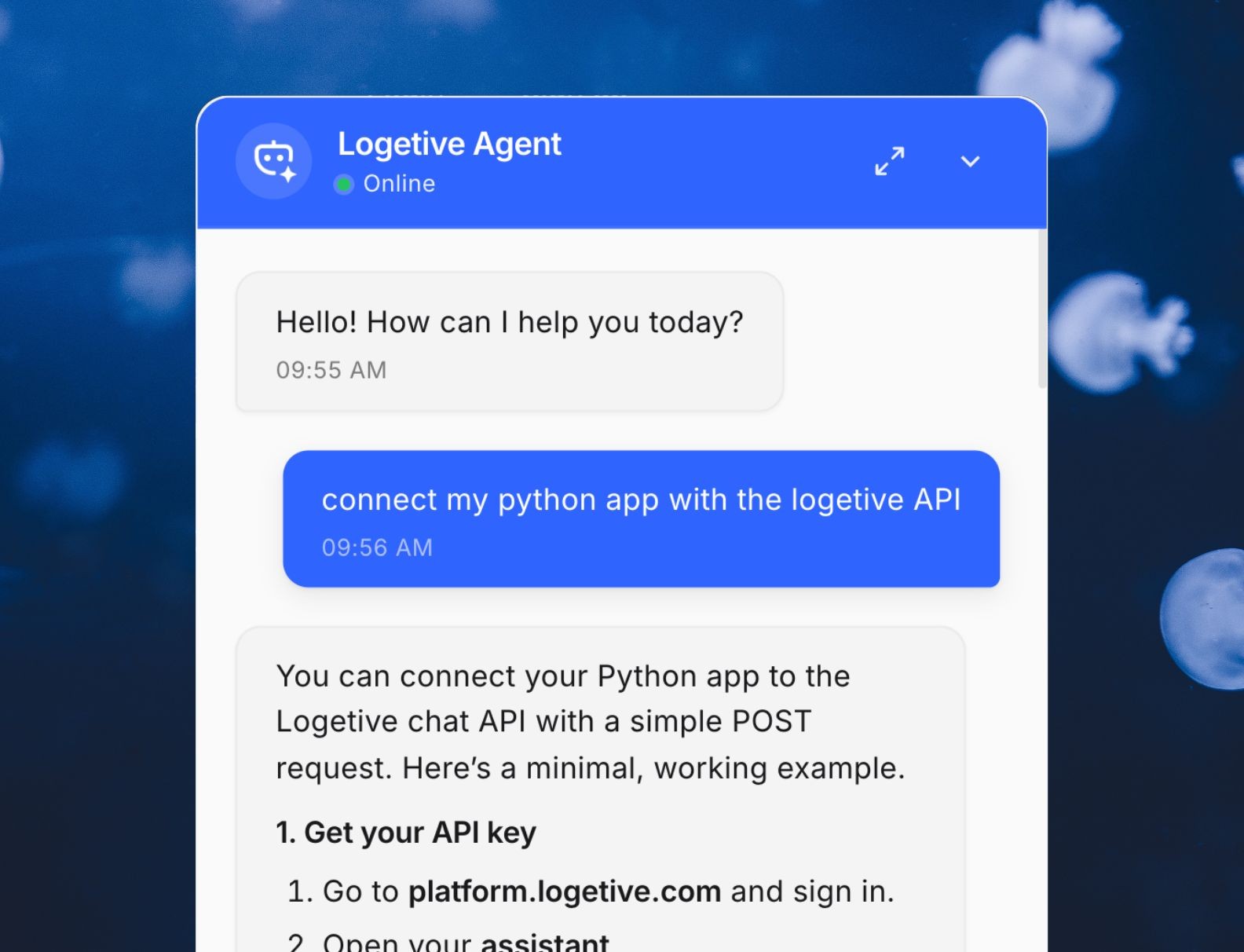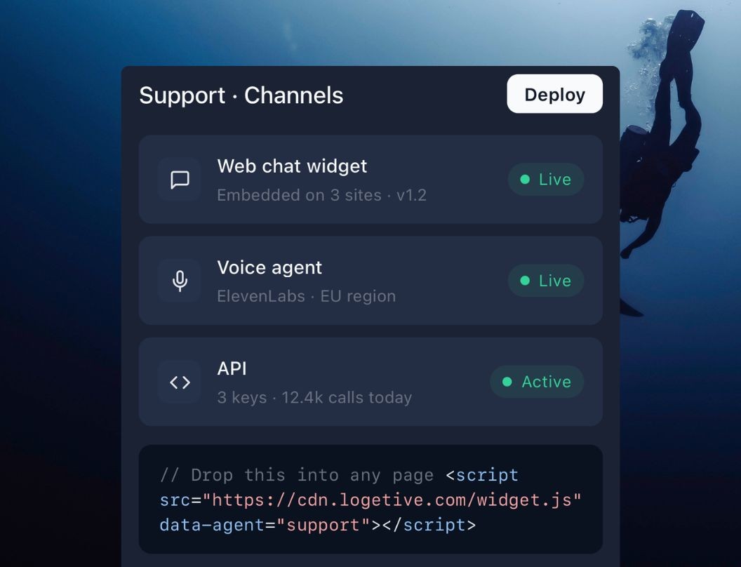 On any website or app. One snippet works on as many sites or apps as you need. Same assistant, same behaviour everywhere. You control which domains are allowed.